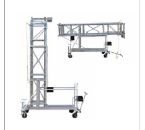 Product description Manufactured from high tensile Aluminium Alloy this ladder is designed to pass through a small entrance and avoid overhead obstruction, this ladder can be tilted into a horizontal position. Hand operated Winch gear is provided with required wire rope and pulleys for Tilting & Extending the ladder. A Cubical Platform and Tools tray are provided for comfortable working at heights. Heavy M.S Trolley base is equipped with wheels, turning Devices, jacks, etc.