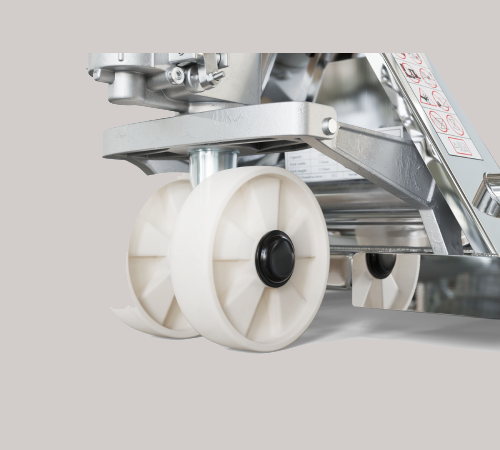 SS pallet trucks mainly use for FMCG and pharma companies such as: sea food, cold place, chemicals and etc. All parts of the whole pallet truck are made from 304 grade stainless steel, including hydraulic pump, fork frame, handle and so on.